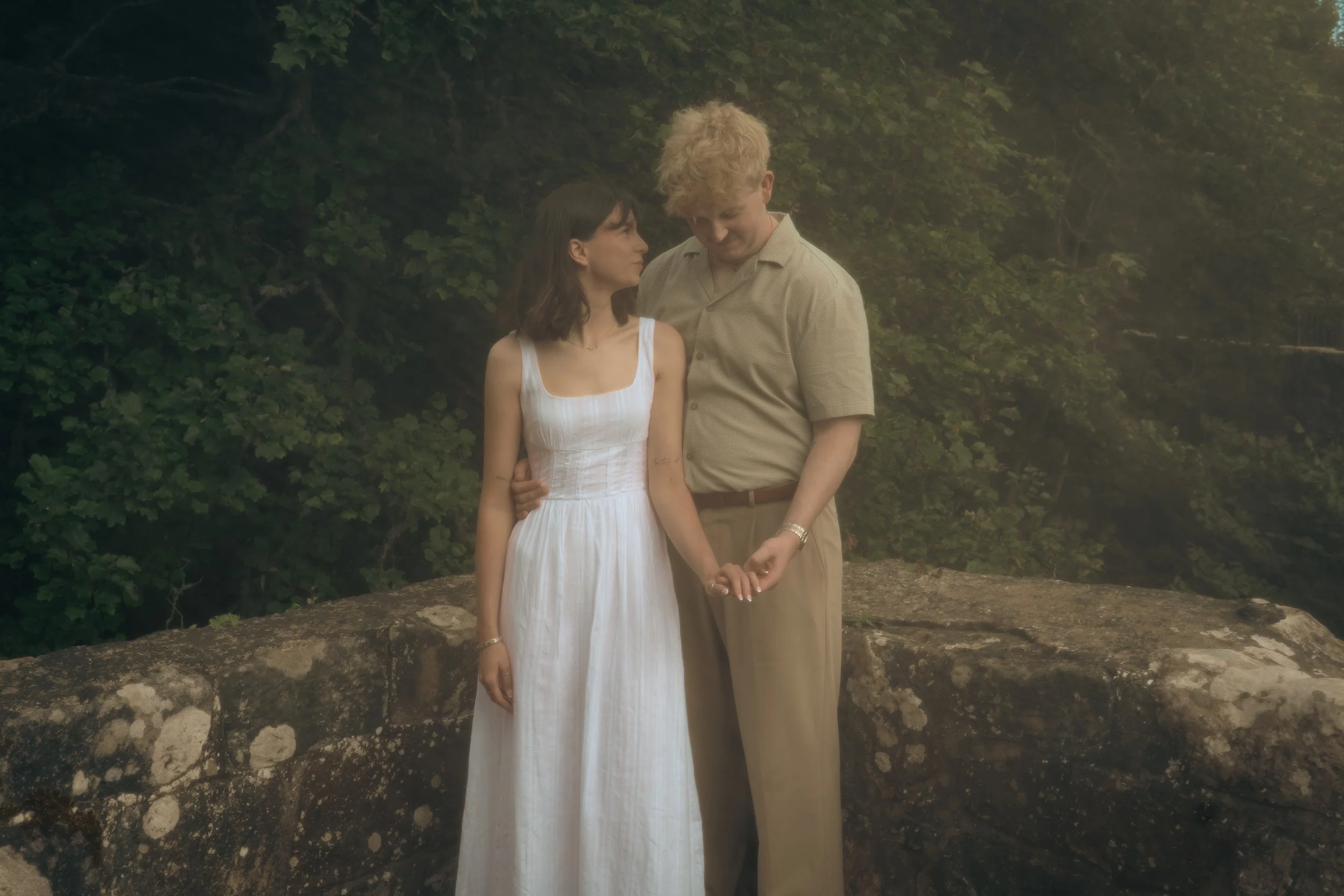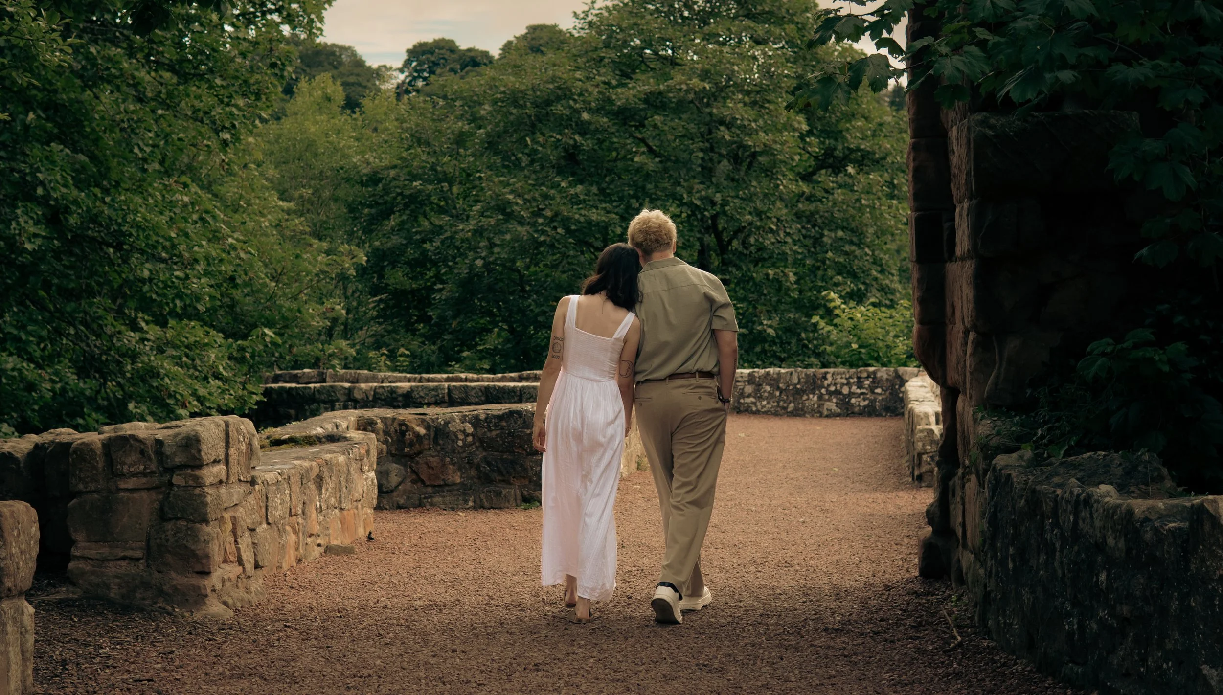 This romantic engagement session at Roslin Glen Country Park in Midlothian was inspired by that feeling. Soft, nostalgic, a little cinematic - an “engagement meets The Notebook” kind of love story. But the connection? Completely real. These two had only just gotten engaged, and that sense of we can’t quite believe this is happening was still written all over them.