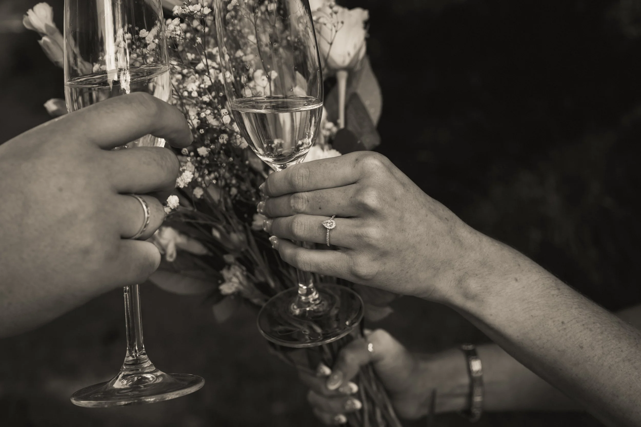 During our picnic-style celebration, they popped a bottle of fizz and included something very special - their mothers’ wedding rings meaningfully incorporated as a quiet gesture to their mums, no longer with us but still part of this new chapter. We captured a few tender, subtle moments with the rings, adding an extra layer of love to the morning.