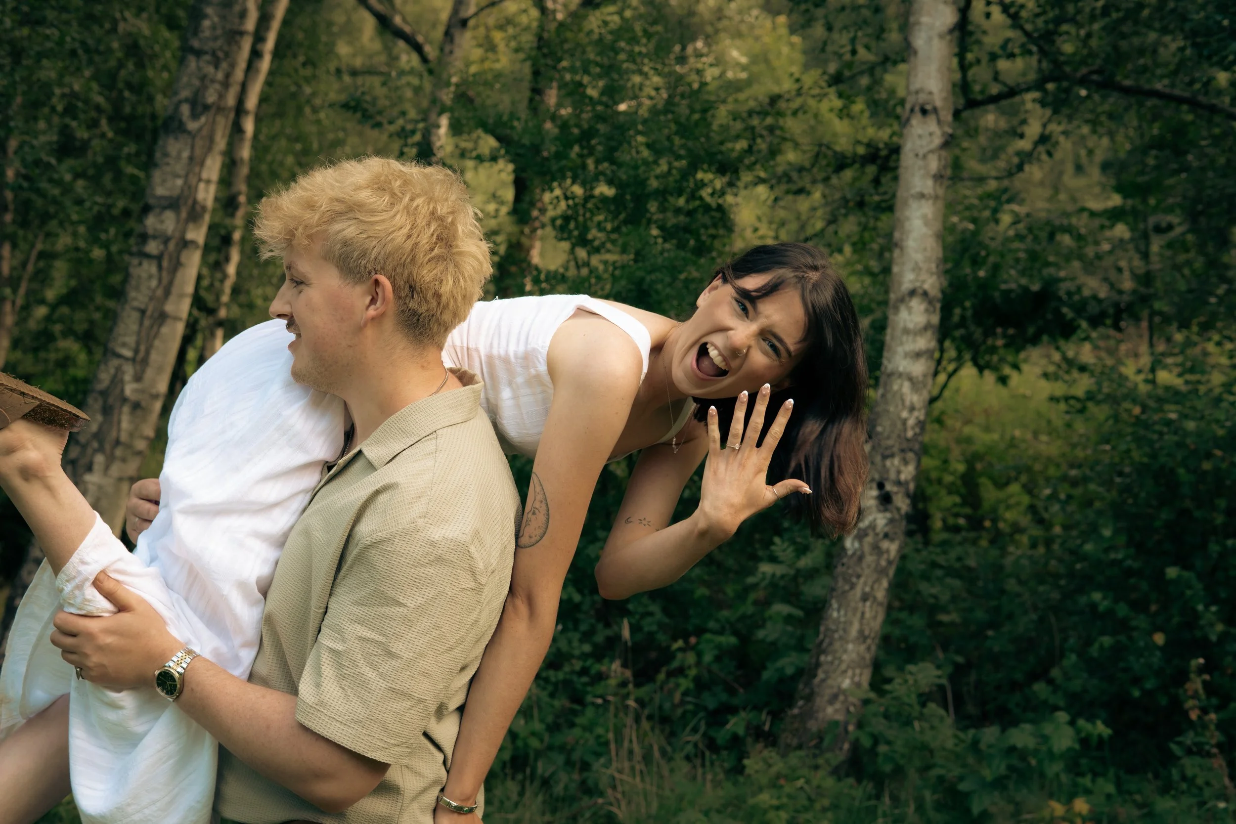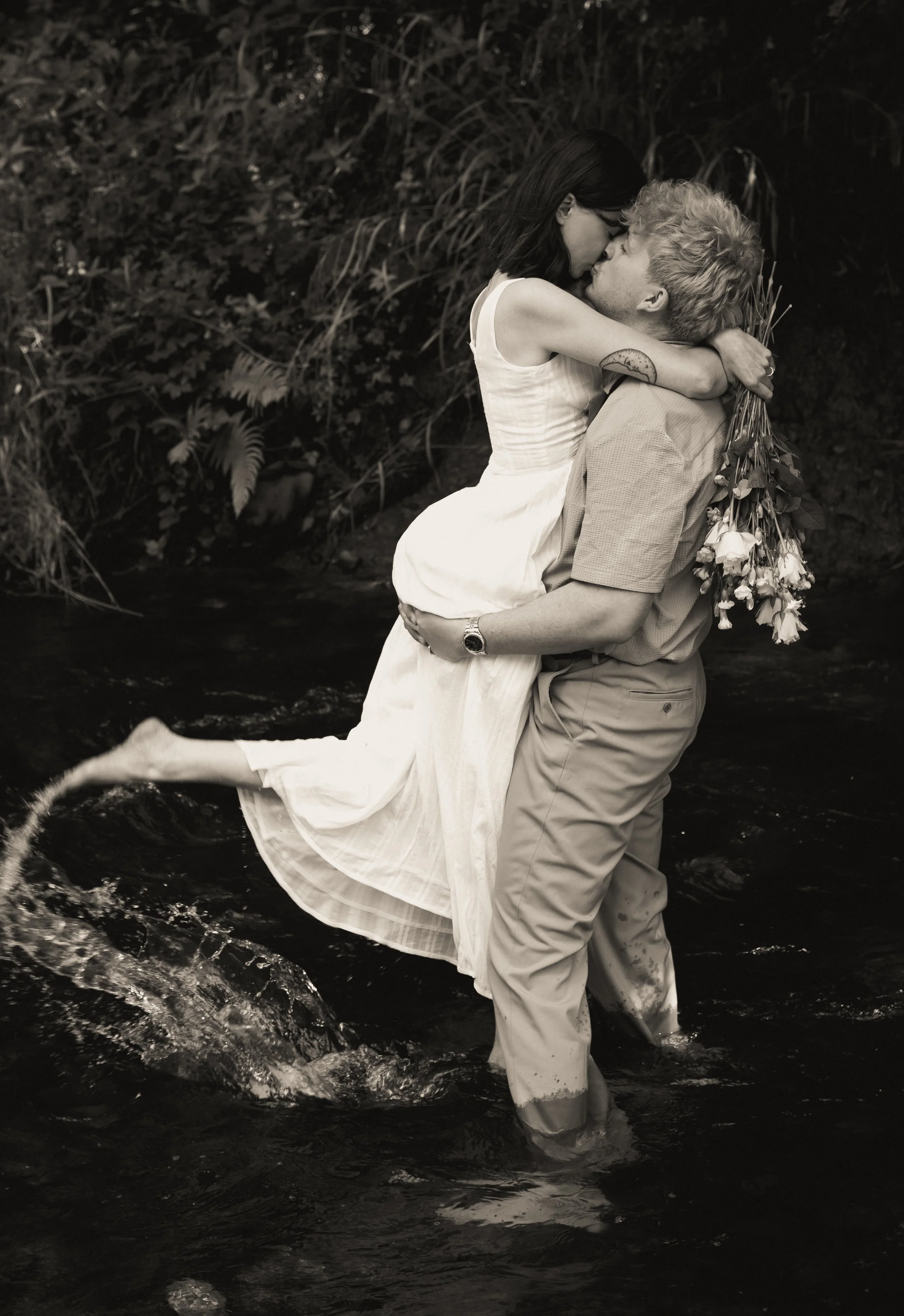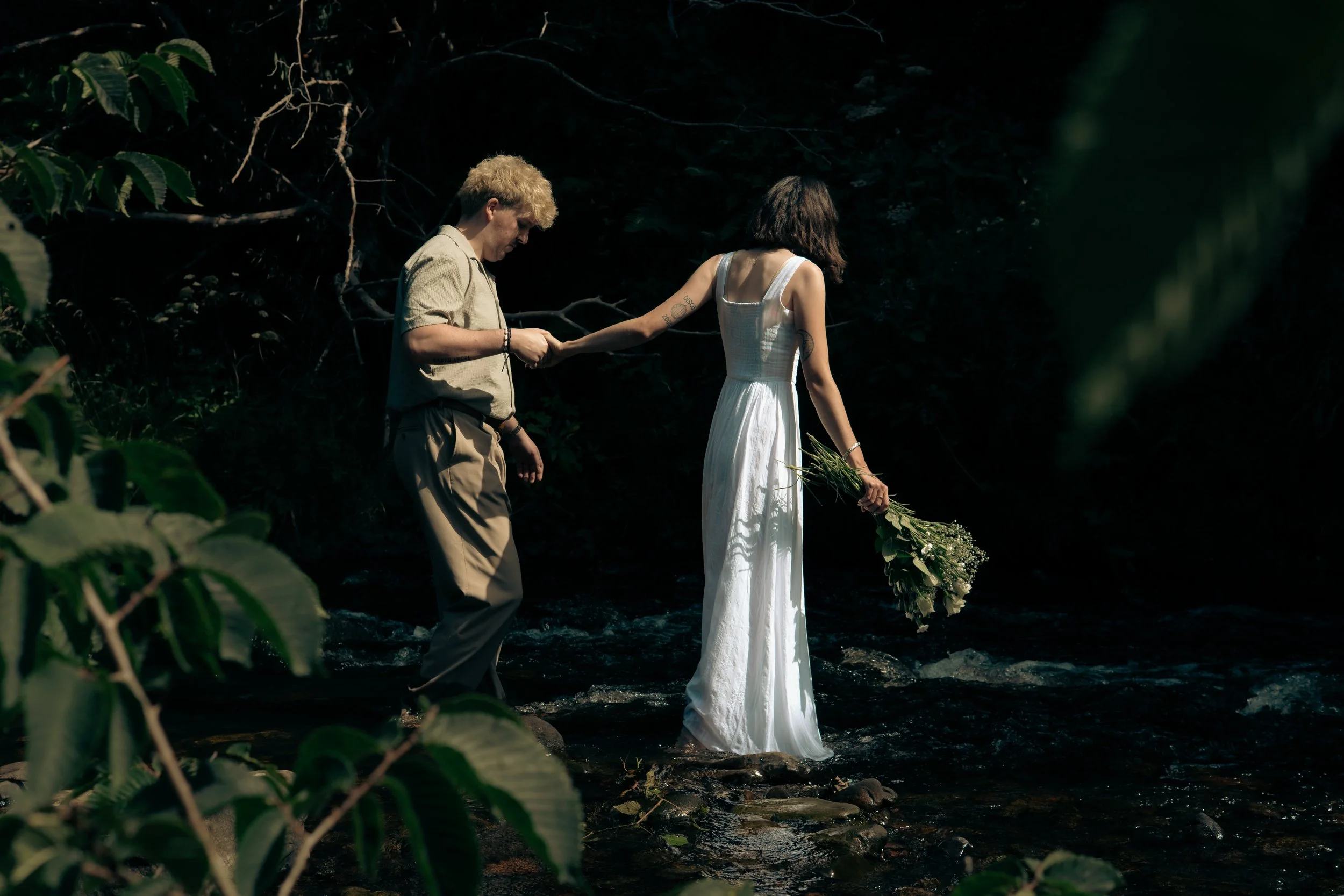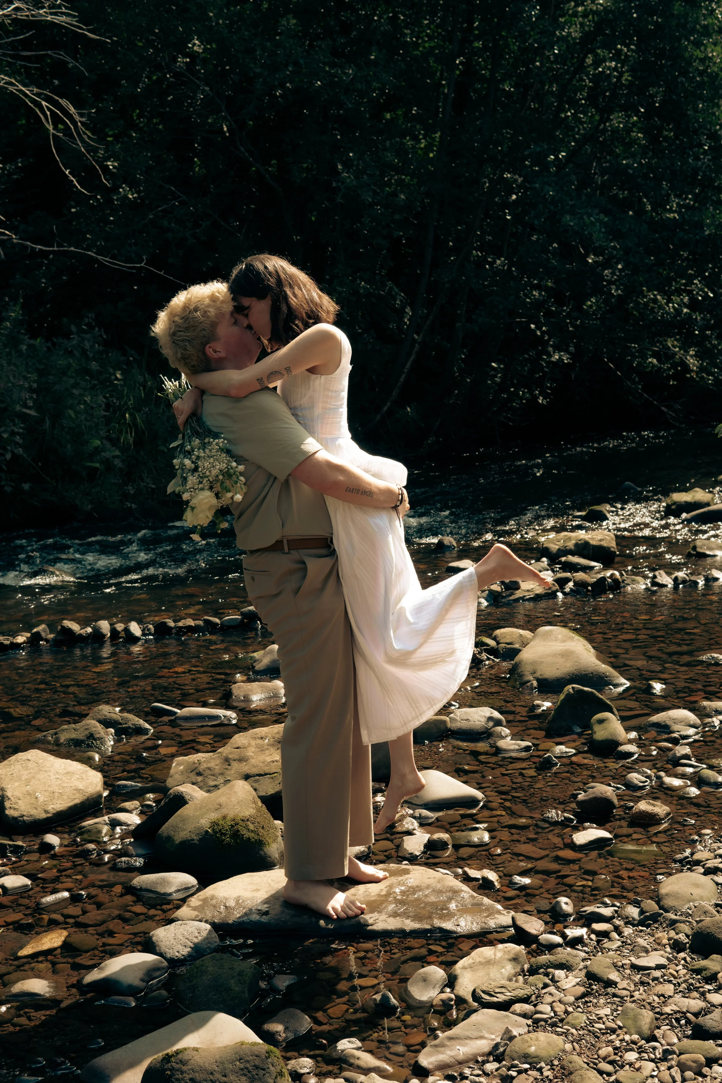 Cold water, shoes off, laughter echoing through the trees completely in the moment and completely unbothered. Those are the kinds of images that feel alive. Intimate, honest, and full of connection. Our last shots were down in that river. Simple, unposed, and completely them - a gentle, adventurous close to a morning filled with love, laughter, and meaningful gestures.